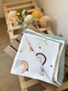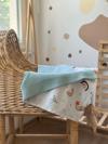 Geometrik desenleriyle modern ve şık bir tasarıma sahip olan bu müslin bebek battaniyesi, bebeğinizin odasına estetik bir dokunuş katar