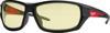 Dayanıklı, çizilmez sarı lenslere sahip, Milwaukee'den konforlu bir çift performans güvenlik gözlüğü.