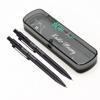 Bu ikili kalem seti, bir adet tükenmez ve bir adet uçlu kurşun kalemden oluşur. Her iki kalem de rahat bir tutuş sağlayan, dayanıklı mat siyah metal gövdeye sahiptir. Kalemlerin üzerine lazerle işlenen isim veya yazı, ürünün kalitesini ve kişiye özel olduğunu hemen belli eder.