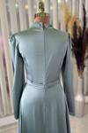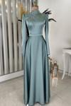 Lara Kemerli Saten Tesettür Abiye Saks - Image 1