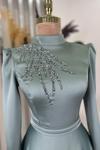 Önü Drapeli Kuyruklu Boncuk İşlemeli Miranda Tesettür Abiye Zümrüt - Image 1