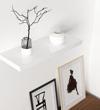60 cm genişliği ve 23 cm derinliği ile kitap, dekoratif obje veya aksesuarlarınızı sergilemek için ideal kullanım alanı sunar. 3,6 cm yüksekliği, rafın duvarda ince ve minimal bir şekilde durmasını sağlar.