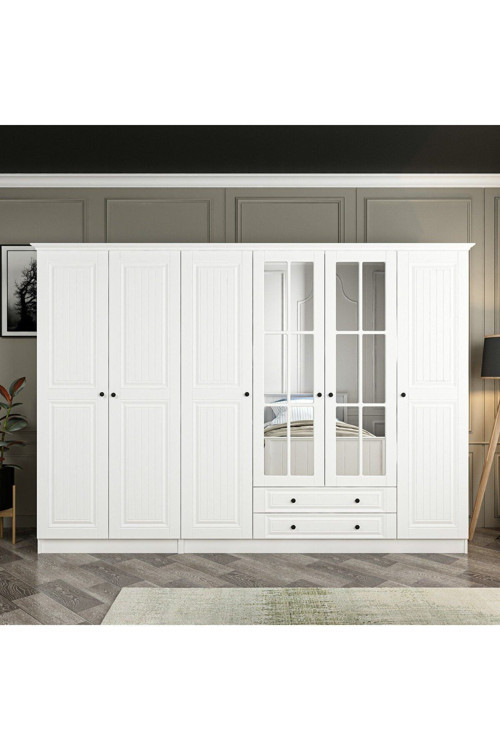 Kale 6 Mebran Kapaklı 2Ç Taçlı Dolap - Beyaz Ürün Genişliği : 270 cm Ürün Yüksekliği : 190-210 cm Ürün Derinliği : 52 m Ürün Özellikleri Ürünümüz mebran kapaklıdır.