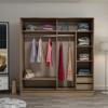 180 cm genişlik, 60 cm derinlik ve 190–210 cm yükseklik ölçüleriyle, kullanışlı ve estetik bir dolap çözümü sunar.