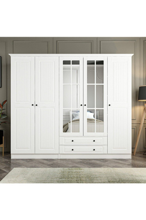 Kale 5 Mebran Kapaklı 2Ç Taçlı Dolap - Beyaz Ürün Genişliği : 225 cm Ürün Yüksekliği : 190-210 cm Ürün Derinliği : 52 m Ürün Özellikleri Ürünlerimizin tamamı yüksek kalite melamin yüzeye sahip 18 mm yonga levhadan üretilmektedir.