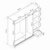 220 cm genişlik, 60 cm derinlik ve 210 cm yükseklik ölçüleriyle geniş ve fonksiyonel bir depolama alanı oluşturur.