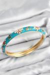 Mineli Pirinç Mavi Çiçek Motifli Gold Kadın Kelepçe