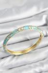 Mineli Pirinç Zirkon Taşlı Turkuaz Çiçek Motifli Gold Kadın Kelepçe