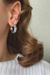 Mineli Renkli Çiçek Halka Tasarım Kararmaz Renk Atmaz Kadın Çelik Küpe