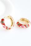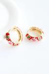 Mineli Renkli Çiçek Motifli Halka Tasarım Kararmaz Renk Atmaz Kadın Çelik Küpe