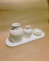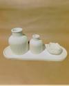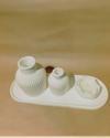 El yapımı bu özel set, modern çizgileri ve doğal dokusuyla iç mekan stilinize sofistike bir hava katar. Varyasyonlu vazo formları ve lotus detaylı mumluk, uzun tepsi üzerinde bir araya gelerek göz alıcı bir uyum yaratır.
