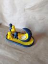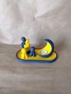 Lacivert ve sarının eşsiz uyumunda birleşen aile figürleri, ay formundaki mumlukla aydınlanıyor.