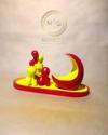 Kırmızı ve sarının eşsiz uyumunda birleşen aile figürleri, ay formundaki mumlukla aydınlanıyor.