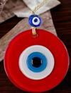 Mini boy kırmızı renk nazar boncuklu duvar süsümüz tamamen el işçiliği ile üretilmiştir. Tasarım harikası el yapımı nazar boncuklu duvar süsümüz 10 x 10 santimetre ölçülerindedir. Ürünümüz ip dahil 23 santimetre boyundadır.