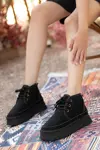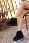 Mini Kürk Astarlı Kalın Taban Bağcıklı Rahat Kadın Bot