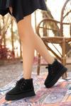 Ellolita Mini Kürk Astarlı Kalın Taban Bağcıklı Rahat Kadın Bot