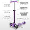 - Çocuğunuz Mini Micro Deluxe Magic'in gidonuna dokunur dokunmaz, entegre dokunmatik sensör, gidon üzerindeki LED ışıkların beş farklı renkte parlamasını sağlar.
