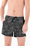 Miami Beach Mini Model Su İtici Özellikli Dijital Baskılı Kısa Boy Erkek Plaj Deniz Şort Mayo - 279-Siyah