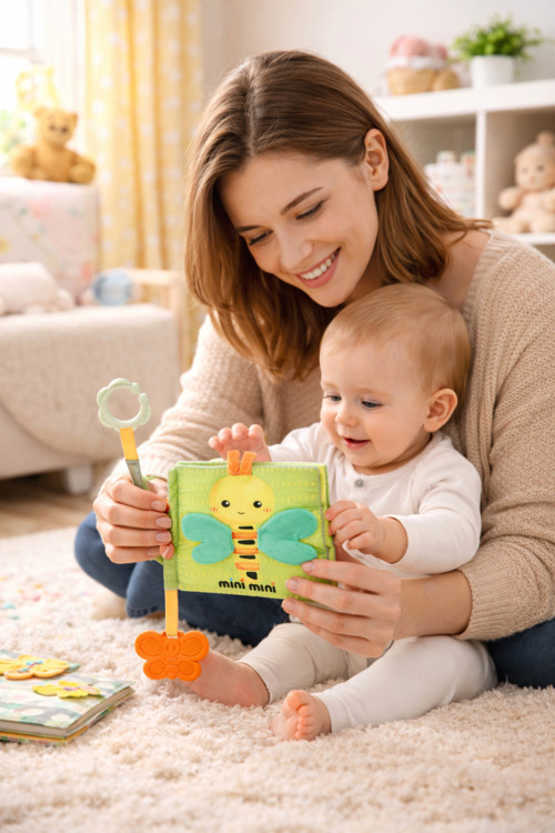 Minidor Bebek Aktivite Kitabı – Hışırtılı & Diş Kaşıyıcılı Yumuşak Bez Kitap