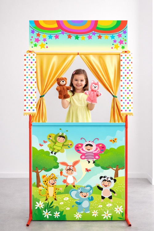 Minidor Çocuk Kukla Oyun Sahnesi – Perdelikli Kukla Gösteri Sahnesi Eğitici Oyun Standı Kukla HEDİYELİ