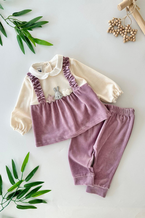 Minigimin Cicileri (3-12 Yaş) Sevimli Tavşan Desenli Kadife Bebe 2 Li Takım - Lila