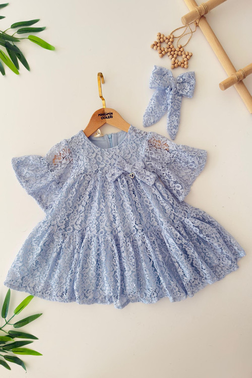 Minigimin Cicileri Dantel Fiyonk Detaylı Kız Çocuk Elbise - Mavi