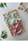 - Set İçeriği: Fırfır detaylı şirin gömlek ve nakış işlemeli pantolon.