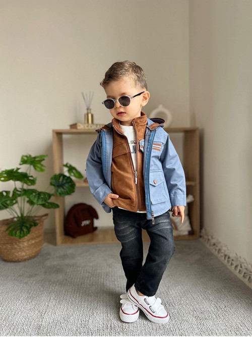 Minigimin Cicileri Lifeis Meantto Good 4 Parça Süet Yelekli Kapüşonlu Ceketli Takım - İndigo