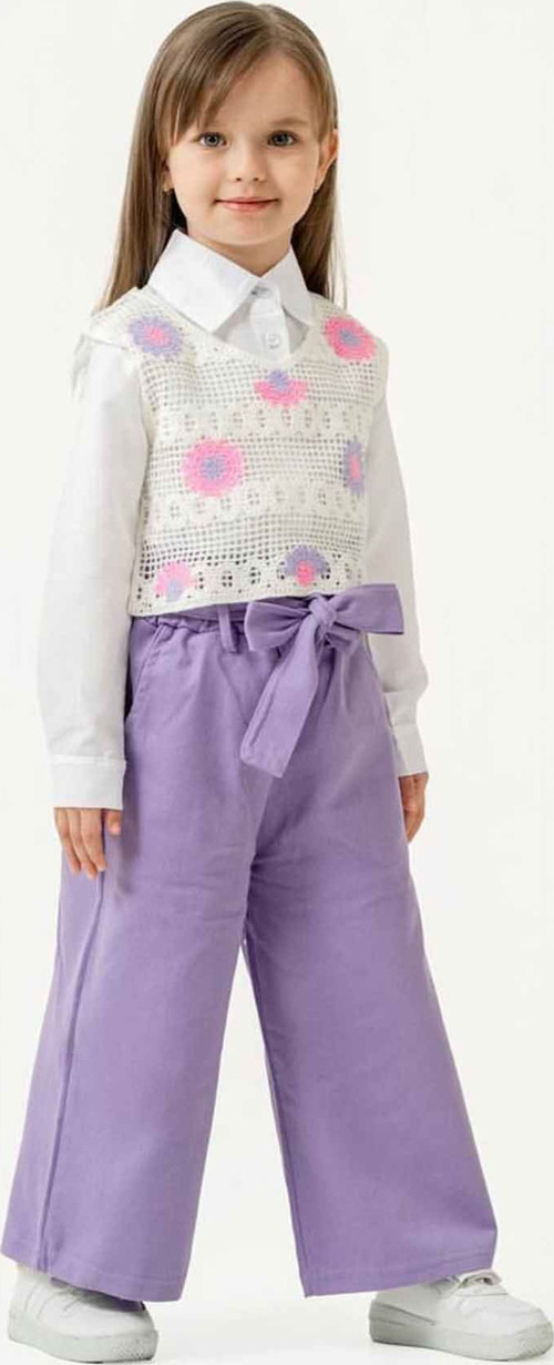 Minigimin Cicileri Örgü Cepkenli Gömlekli Kız Çocuk 3 Lü Takım - Lila