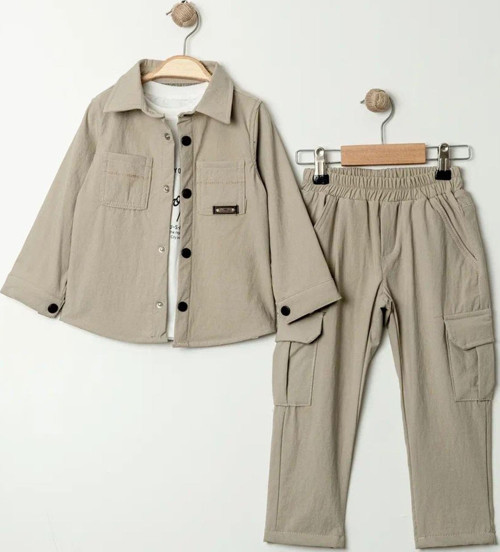 Minigimin Cicileri Paraşüt Esnek Brokly Baskılı Erkek Çocuk 3 Lü Takım - Taş