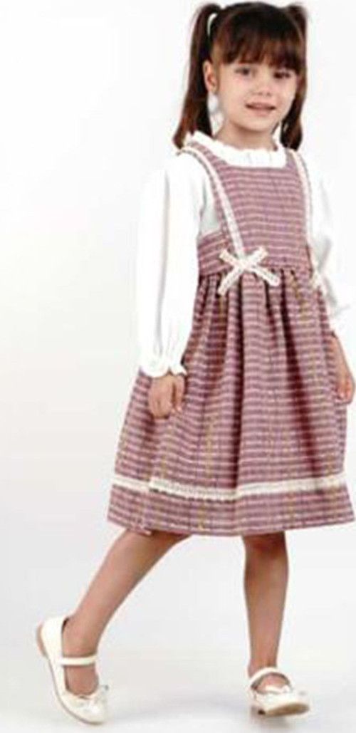Minigimin Cicileri Tuvit Ekose Yaka Roba Fistolu Kız Çocuk Elbise - Gül Kurusu
