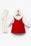 - Set İçeriği: Yaka nakışlı uzun kollu üst, fiyonk detaylı şirin jile ve rahat kilotlu çorap.