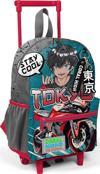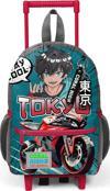 Minik Yuva Çekçekli Sırt Çantası Gri Nefti Anime Motorsiklet Desenli İki Bölmeli 24064