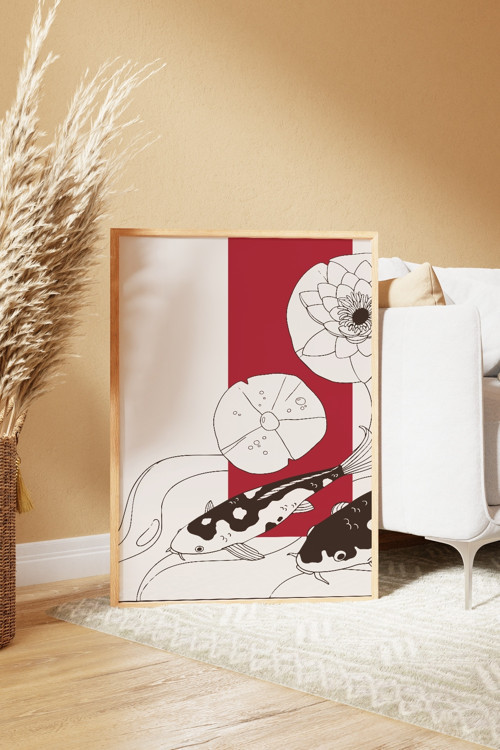 Acar Grafik Minimal Balık Tasarımlı Doğal Ahşap Çerçeveli Tablo