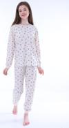 - Rahat bir uyku deneyimi için tasarlanmış, sweatshirt ve pantolon olmak üzere iki parçadan oluşan minimal çiçek detaylı mavi kız çocuk pijama takım