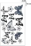 Model: Kelebek ; Kâğıt Boyutu: Genişlik: 6 cm, Uzunluk: 10 cm ; İçeriği: Şablon üzerinde Kelebek figürleri bulunmaktadır. ; Kâğıt üzerinde bulunan çoklu modellerde, istediğiniz modeli kesip ayrı ayrı uygulayabilirsiniz. ; Uygulama Talimatı: Islak bez veya ıslak sünger ile uygulanmaktadır. ; Uygulama yapacağınız bölgenin temiz ve tüysüz olmasına dikkat edin. ; Seçtiğiniz deseni güzelce kesin ve şeffaf filmi çıkartıp uygulama yapacağınız bölgeye yapıştırın. Ardından ıslak bir bez veya sünger yardımıyla 1 dakika kadar kâğıda bastırdıktan sonra kâğıdı yavaşça kaldırın. Uygulama yaptığınız modelin kuruması için 30 - 45 Dakika kadar beklemelisiniz. Dövmeniz uygulanmış olacaktır. ; Uzun süre kalıcılık sağlamak için uyguladığınız bölgeye ovalama, sürtünme yapmamaya dikkat edin. ; Uygulama talimatlarına uygun yapılan dövmeler vücutta ortalama olarak 3-10 gün kalıcılıktadır. ; UYARILAR: Hassas ciltte ve göz önünde kullanmayınız. ; Alerji belirtilerini tetikleyen aşırı hassas ciltler için uygun değildir. ; Ateşten uzak tutunuz. ; 3 yaşından küçük çocuklar için uygun değildir. ; Geçici dövme paketlerinizi oda sıcaklığında ve kendi paketinde muhafaza ediniz. ; Nemli, direk güneş ışığına veya klimaya maruz kalan açılmış paketler bozulma yapabilir. ;