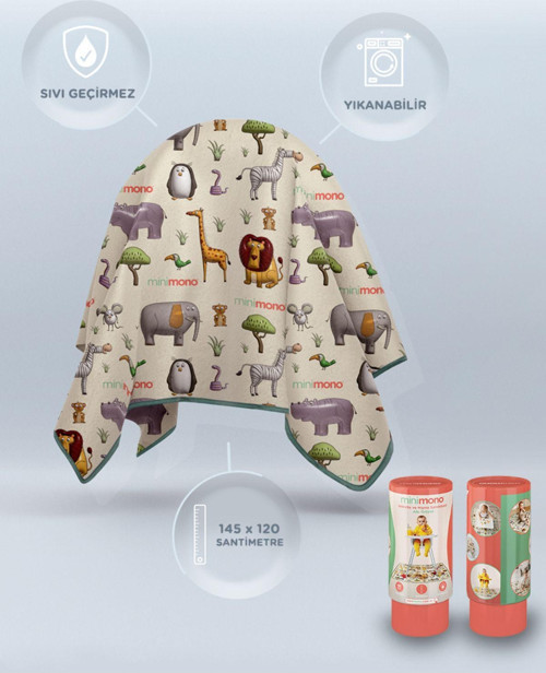 Mama Sandalyesi ve Aktivite Örtüsü | Orman Hayvanları 145×120 cm ebadı ile yemek ve oyun zamanı zemini korur! Yemek zamanı yere, oyun zamanı zemine, piknik zamanı bahçeye, boyama zamanı masaya pratik ve sıvı geçirmez yüzeyi ile tüm aktivitelerinizde vazgeçilmeziniz olacak.