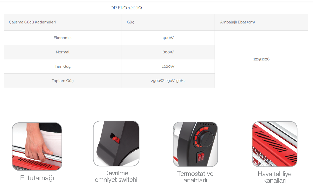 - ✅ 1200 W Quartz Isıtıcı — hızlı ve etkili ısıtma sağlar.