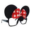 Minnie Mouse Gözlük: Siyah çerçeveli, üzerinde ikonik siyah kulaklar ve kırmızı-beyaz puantiyeli fiyonk detaylı gözlük. Eğlenceli görünüm katarken, partide hemen fark edilmenizi sağlar.