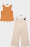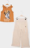 Ürün Özellikleri: Askılı sıfır kol, baskılı, baby overlok detaylı tişört, beli lastikli, bol paça 2'li takım