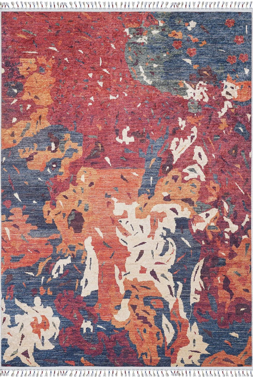 Halinet Minsk Turuncu Modern Etnik Desenli Makinada Yıkanabilir Hav Toz Vermez Leke Tutmayan Kaymaz Taban Dijital Makine Baskı Salon Yolluk Mutfak Halı