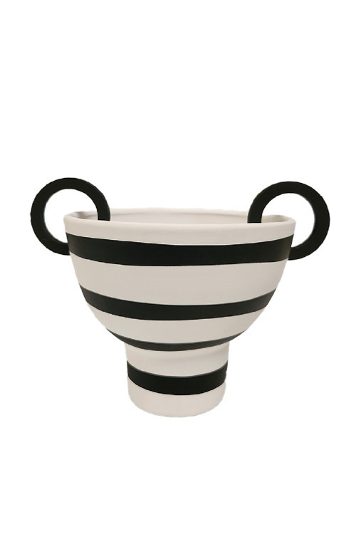 Minteks Çizgi Detaylı Seramik Dekoratif Meyvelik Siyah-Beyaz