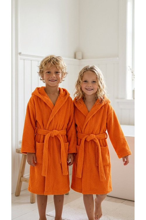 Soft %100 Pamuk Kapüşonlu Çocuk Bornozu
