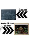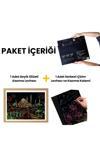 Bu sette yer alan 28×40 cm boyutundaki İstanbul manzarası kazıma levhası, kazıdıkça ortaya çıkan altın ve renkli detaylarla şehrin büyüleyici görüntüsünü tabloya dönüştürür.