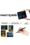 Minyaturia Kazıyarak Çizim Yapma Seti | Van Gogh Eserleri - 4 Adet | Hobi Seti, Tablo Ve Kalem Dahil