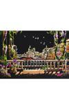 28×40 cm boyutundaki Venedik manzarası kazıma levhası, kazıdıkça ortaya çıkan gondollar, köprüler ve şehir ışıklarıyla etkileyici bir tabloya dönüşür.