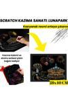 Bu sette yer alan 28×40 cm boyutundaki Lunapark manzarası kazıma levhası, kazıdıkça ortaya çıkan canlı renkler ve detaylarıyla büyüleyici bir tabloya dönüşür.