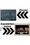 28×40 cm boyutundaki kazıma levhası, tamamlandığında çerçevelenerek evinizin ya da ofisinizin dekorasyonunda modern bir sanat eseri olarak yerini alır.
