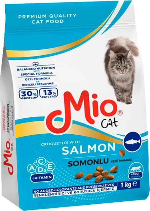 Yüksek Proteinli ve Besleyici Kuru MamaMio Somon Balıklı Yetişkin Kedi Maması, 1 yaş üzeri yetişkin kediler için özel olarak formüle edilmiş, %30 işlenmiş hayvansal protein içeren kuru bir kedi mamasıdır. Somon balığı içeriği ile zenginleştirilmiş bu mama, kedinizin sağlıklı ve