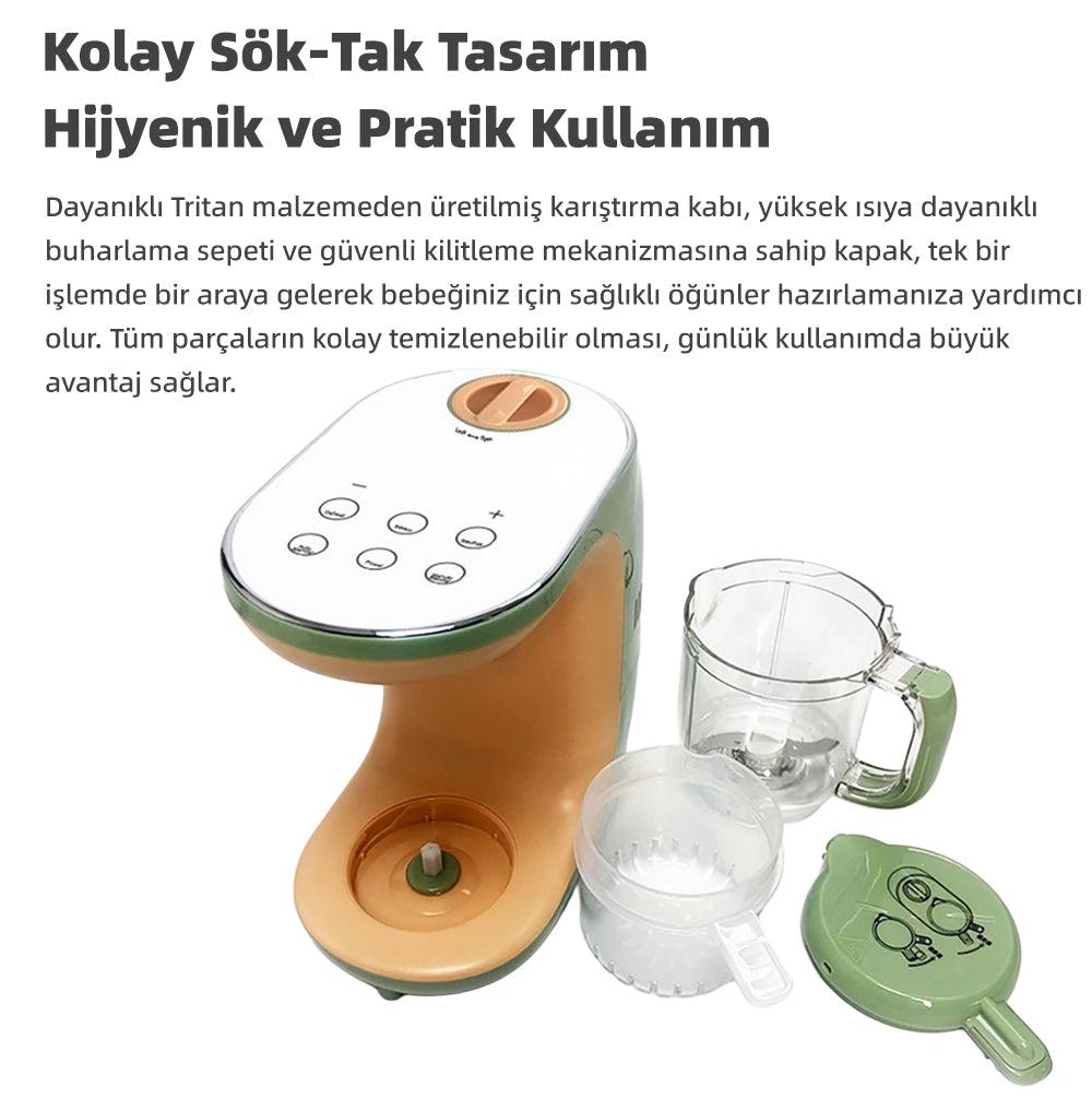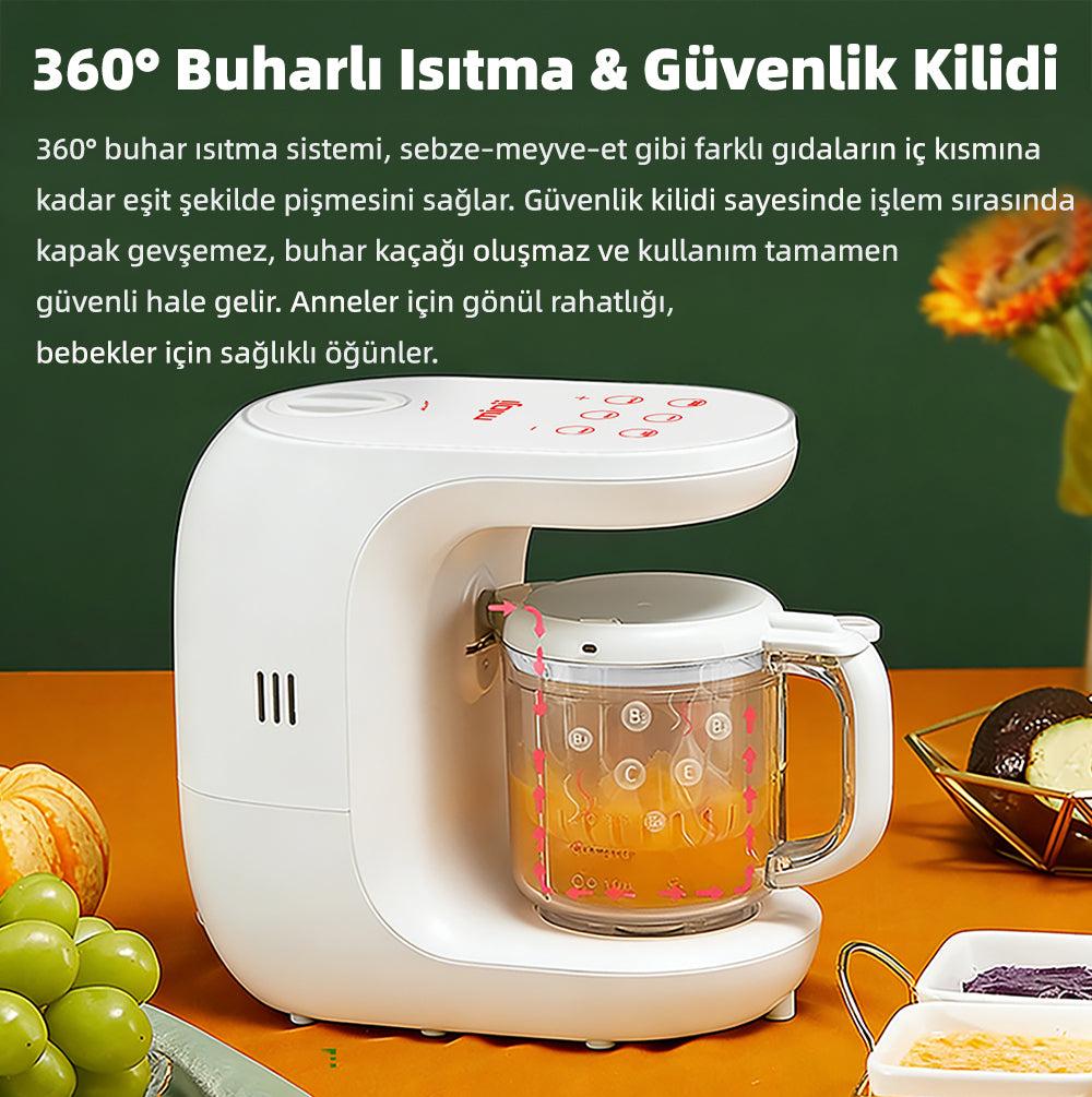 Baby Mix 1 Ne Yapar, Neden Fark Yaratır?Baby Mix 1, birden fazla işlemi tek bir cihazda birleştirerek hem zamandan kazandırır hem de hata riskini azaltır. Buharda pişirme, otomatik ve manuel karıştırma, çözündürme ve sterilizasyon gibi fonksiyonları tek gövdede sunması, onu sıradan mutfak aletlerinden ayırır.